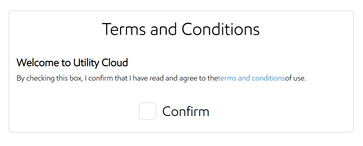 - Review and accept the Utility Cloud terms and conditions.