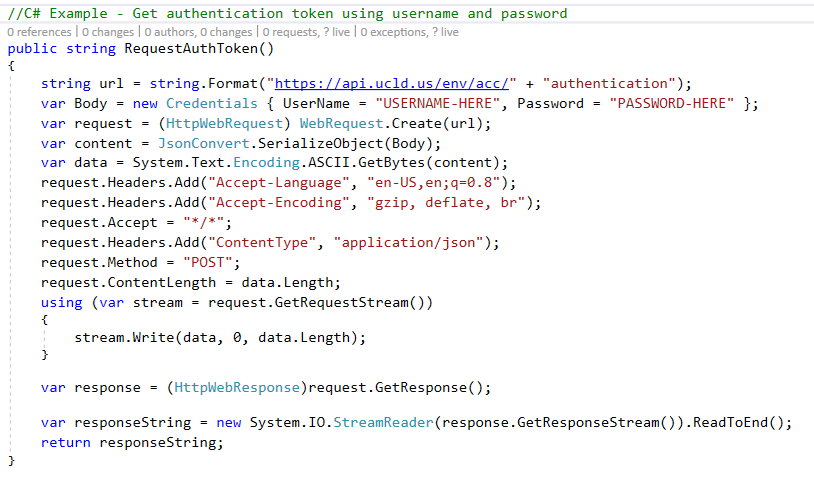 After you have logged into the system and verified your username, you must first request an Authentication Token that is passed with every subsequent request.