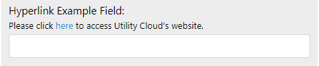 Description Hyperlink: If the Hyperlink is added as the Description, it will appear as informational text below the specified field title.