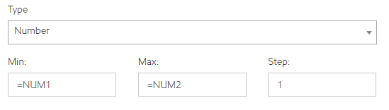 - Step: allowable increments (decimals/whole numbers)