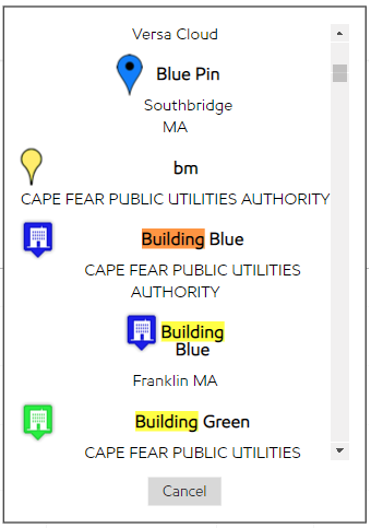 In this example, I searched for 'building'. 7 icons with the text 'building' have been highlighted in the list.
