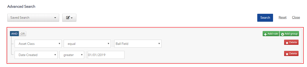 - Use the Add rule or Add group of rules buttons to further specify the search.