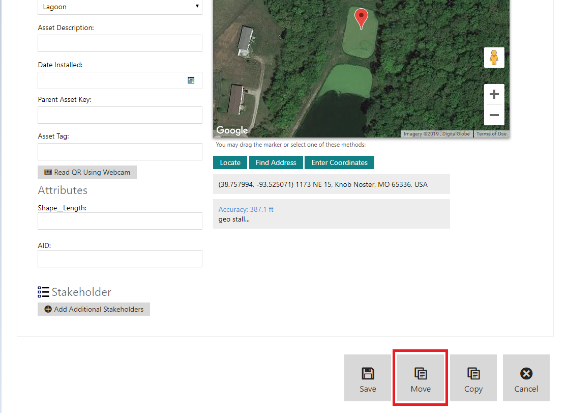 - Locate your Asset: Either drag and drop, locate, find an address, or enter coordinates to locate where your asset is positioned.