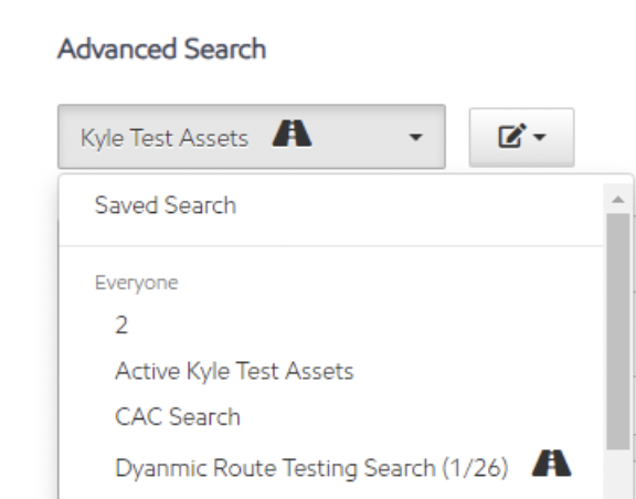 If a saved search is used in a dynamic route then the "route" icon is displayed next to the name of the saved search in the "Saved Search" drop-downs: