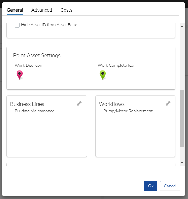 - Under Point Asset Settings, select either the Work Due Icon or Work Complete Icon, then choose a new icon.