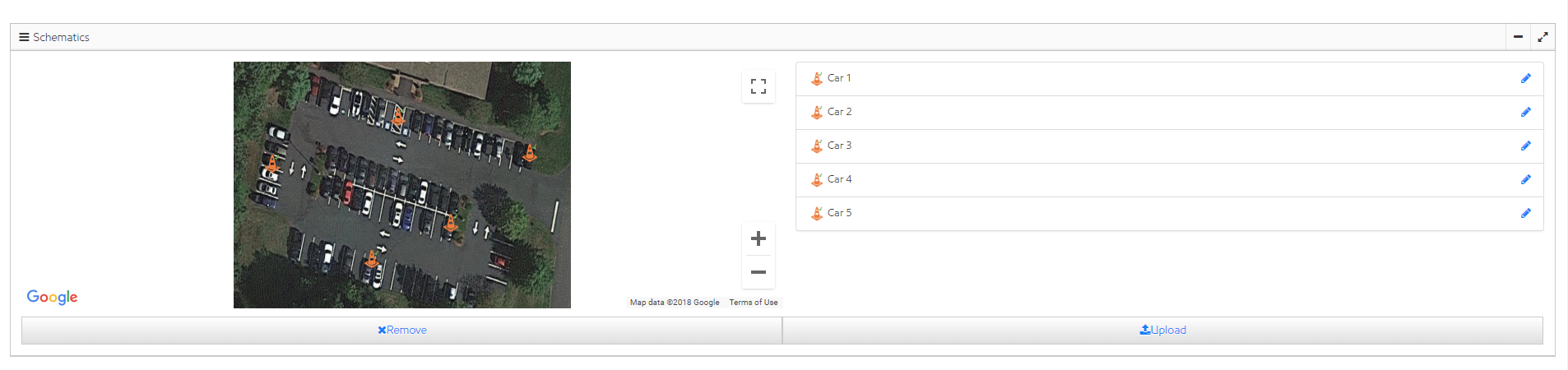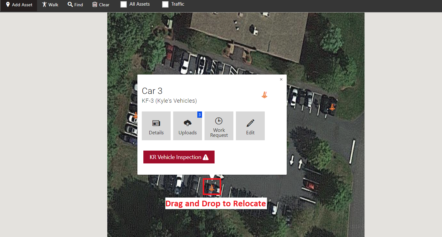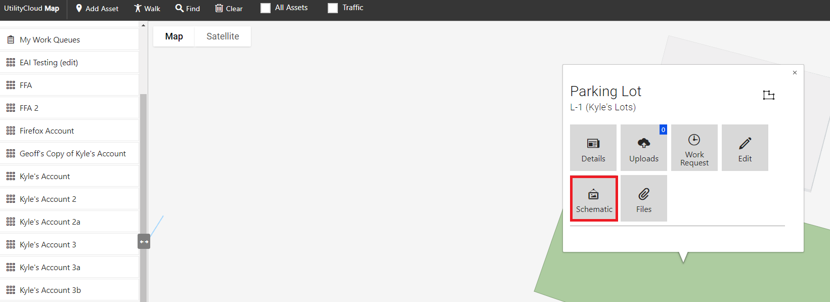 - Select an asset to view details, complete work, or edit; OR drag and drop to move assets on the schematic.