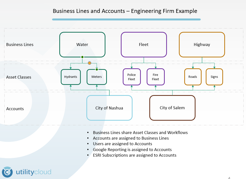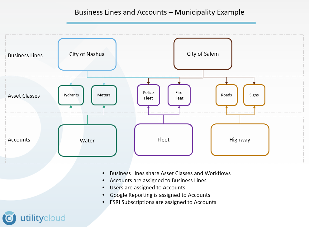 Businesses use Utility Cloud in many different ways. Utility Cloud allows businesses to segregate and group data to support their business needs through Business Lines and Accounts.