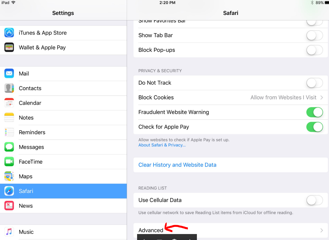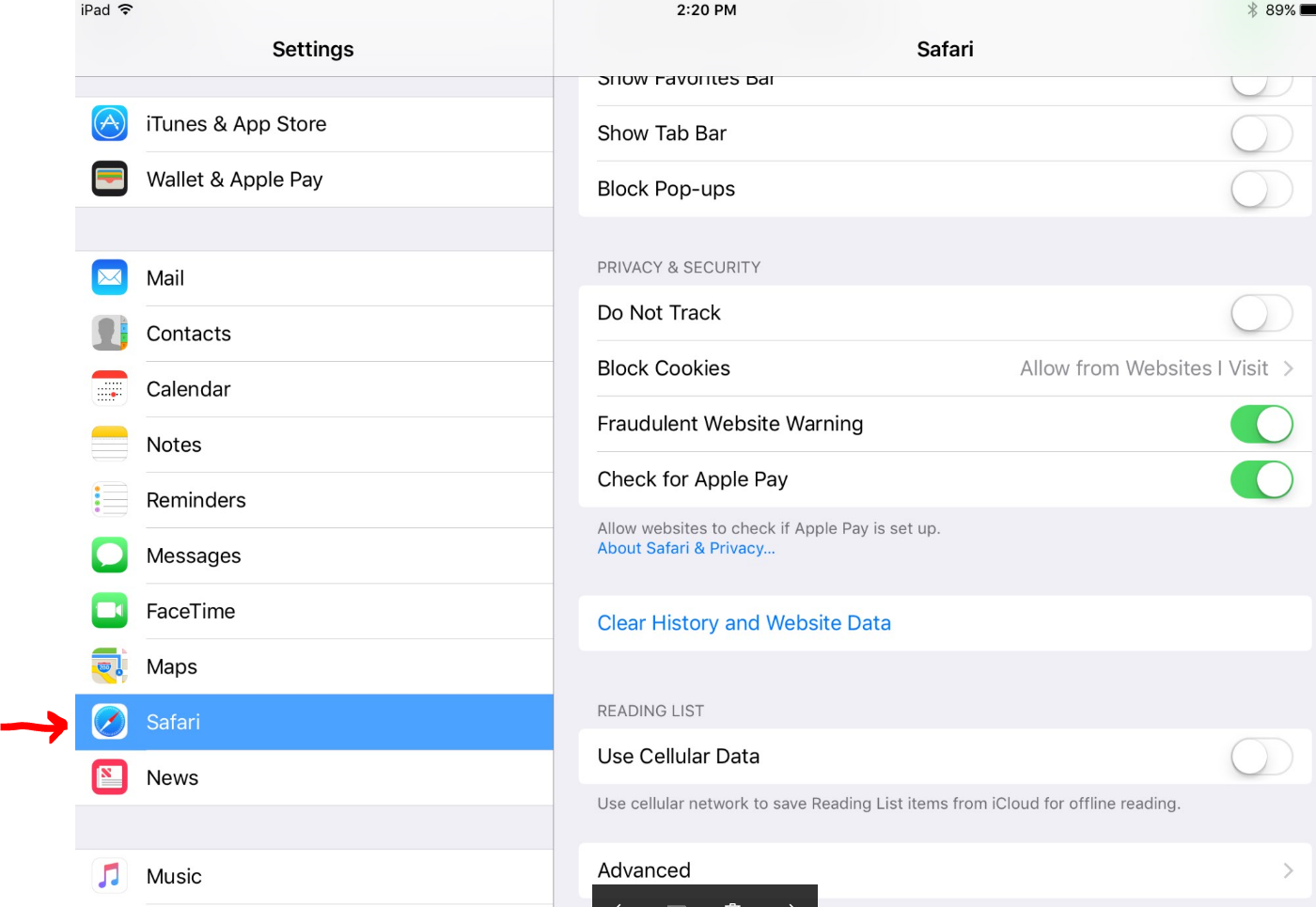 - Scroll down to select Safari.