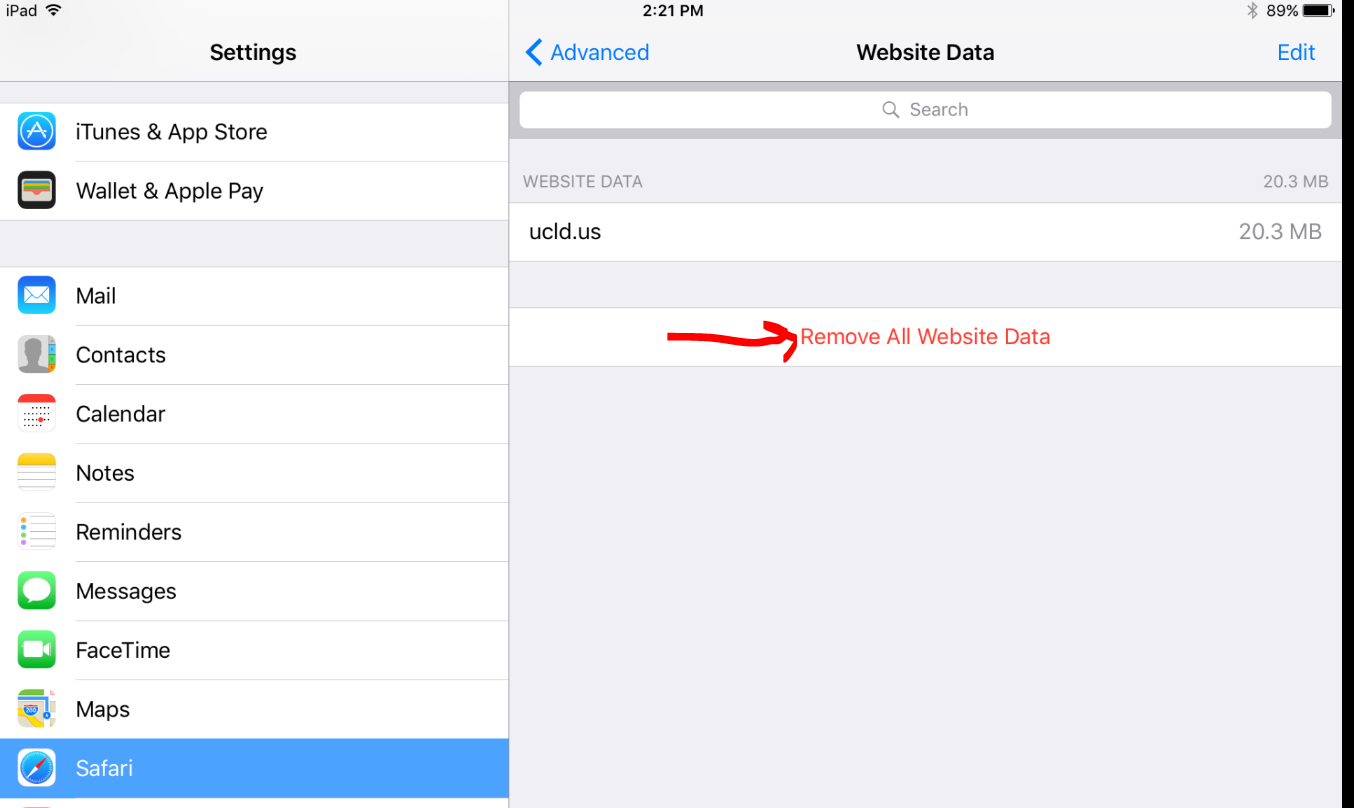 - Press Clear All Cookie Data.