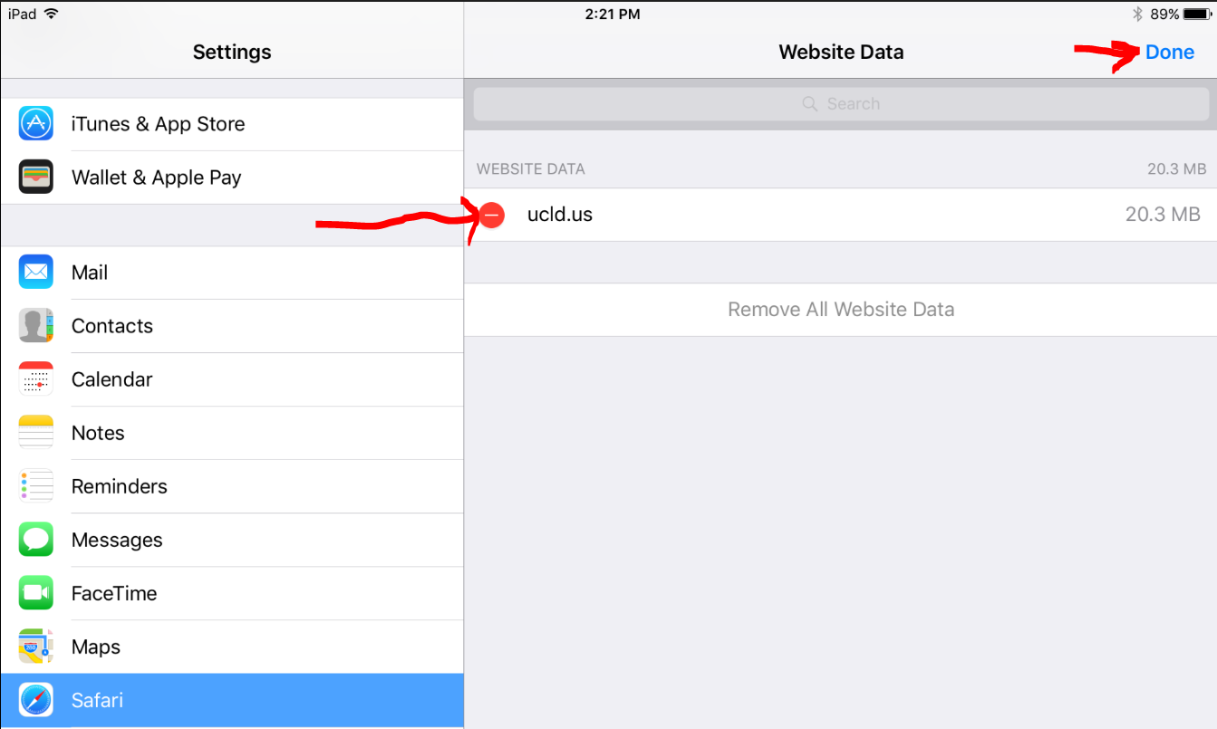 7. Select the remove icon next to "ucld.us", then Done.