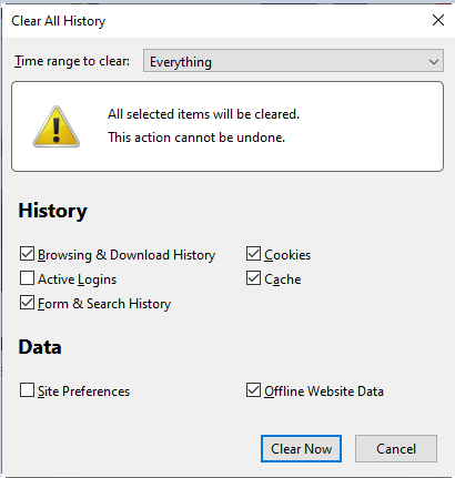- Select Clear Now.