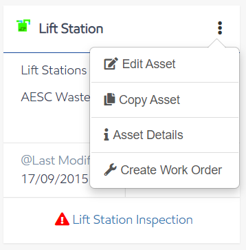 - Select Create Work Order from the asset card of any asset in your search results.