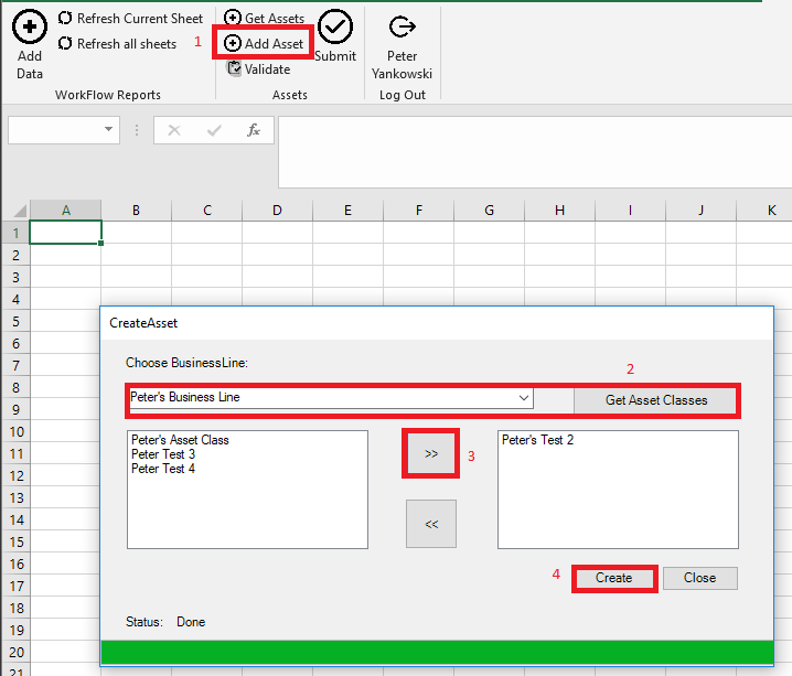 - Access Excel Assets Group: allows you to retrieve a list of assets through the add-in.