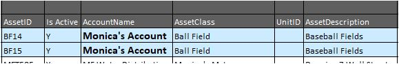 Users can export already created assets from Utility Cloud into an excel file for easy viewing and updating.