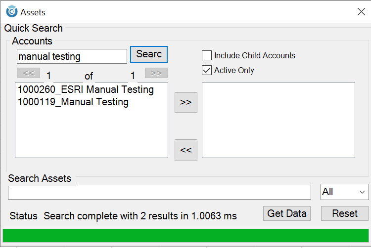 The Account Name of the selected asset from retrieved list is automatically changed to the one specified in Search Results: