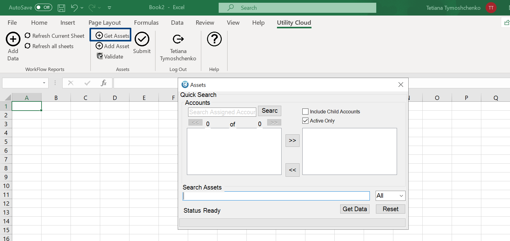 Excel add-in (Access and update Utility Cloud data using Excel)