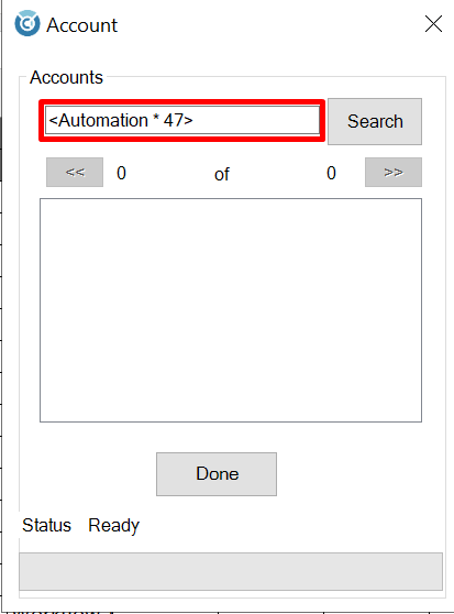 Required: Perform Search by keyword and select at least one account or press on Search button with empty Search Bar to get all accounts listed to which you have access to.