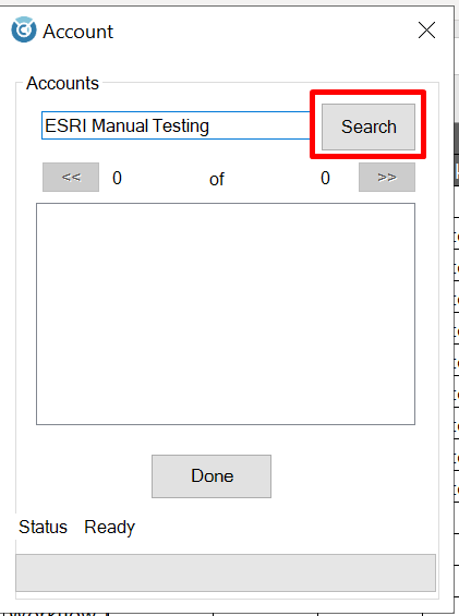 By simply selecting Search button with an empty Search Bar the list of all accounts user has access to will be shown in Results Returned on the left: