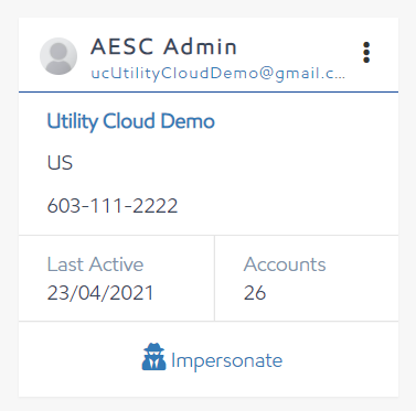 Impersonation is a tool for administrators who need to help troubleshoot any of the users in their billing account. When impersonating a user, you'll see Utility Cloud as if you're logged in as that user with the same level of access and assigned accounts, assets, work, or anything else in Utility Cloud. When impersonating a user, for all intents and purposes you're logged in as that user.