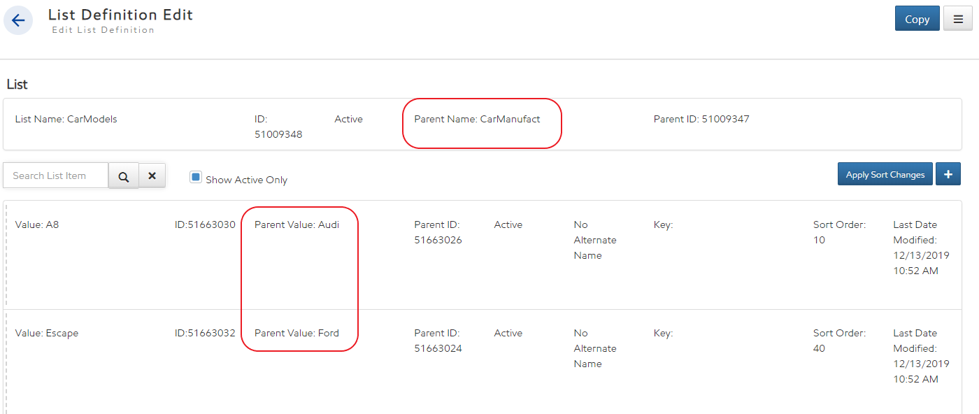 - Parent List Item ID: The ID of the parent option that controls when this value is displayed