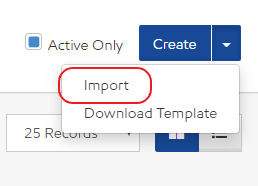 - Once you have a completed spreadsheet, from the List Definition Search page, select Import.