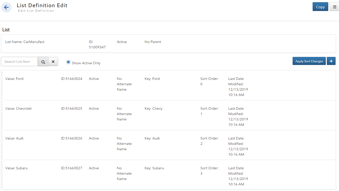 Security Rights Required: View List Definitions; Create/Edit List Definitions; Copy List Definitions