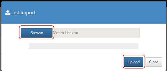 - Enter your file name by typing or browsing to the location, and select Upload.