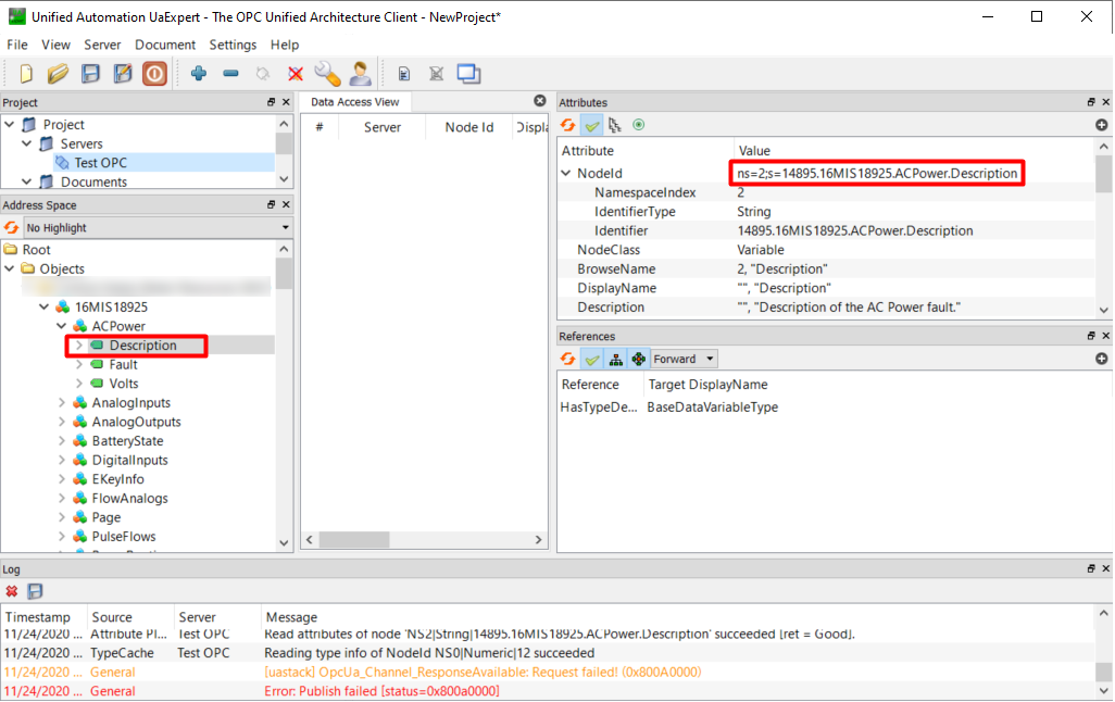 4. Open OPC UA Desktop Client. For example UAExpert and copy NodeId to Workflow Class:
