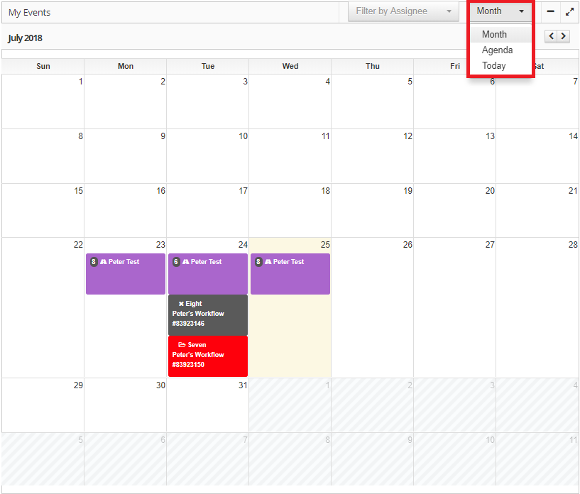 Users can view assigned work orders in the My Events section of the Routes Dashboard. This section includes a monthly, agenda and daily display of work orders. The work orders displayed are based on what work orders are filtered in the Work Orders section and the Route selected.