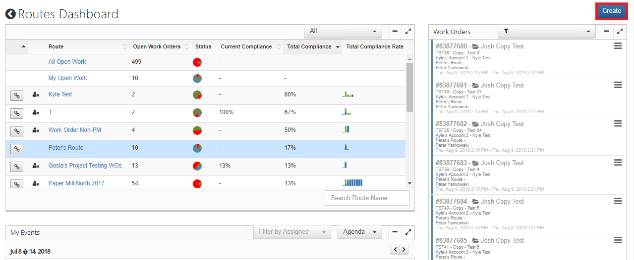 - The Routes Dashboard shows the user all available routes and work orders within their account.