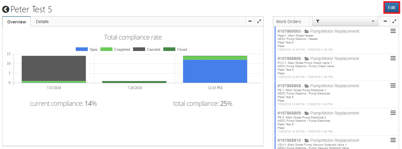 The Work Order Details Page is where users can edit, complete, cancel and view details of the work order and its associated asset.