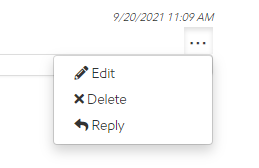 To add a reply to an existing note instead of creating a new one, select the ellipses icon on that note and then choose Reply. From there follow the steps to adding a not as described above.