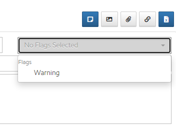 If you want to flag your note as a warning on an asset, then before saving select the dropdown at the upper right of your entry and mark as a warning:
