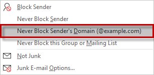 Select Never Block Sender's Domain.
