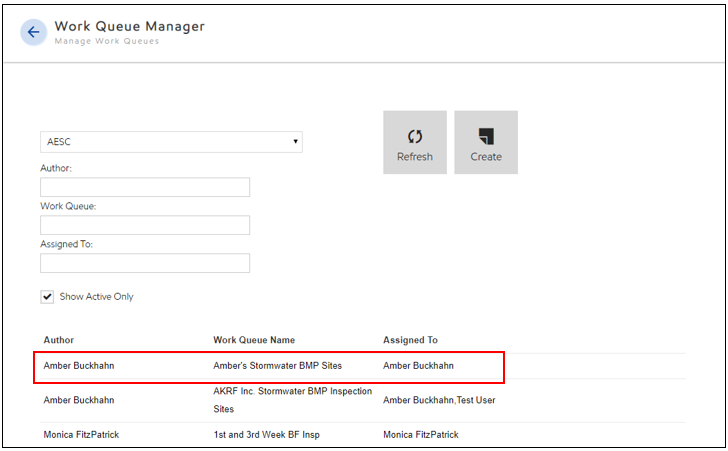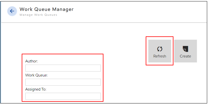 Users can search for work queues by Author, Title and/or Assignees to the view. The user must select Refresh to return the results of the search.