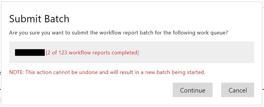 When completing work in a batched work queue, work is not immediately submitted on completion like normally. Instead, users must select Complete Batch from that work queue to submit all pending work: