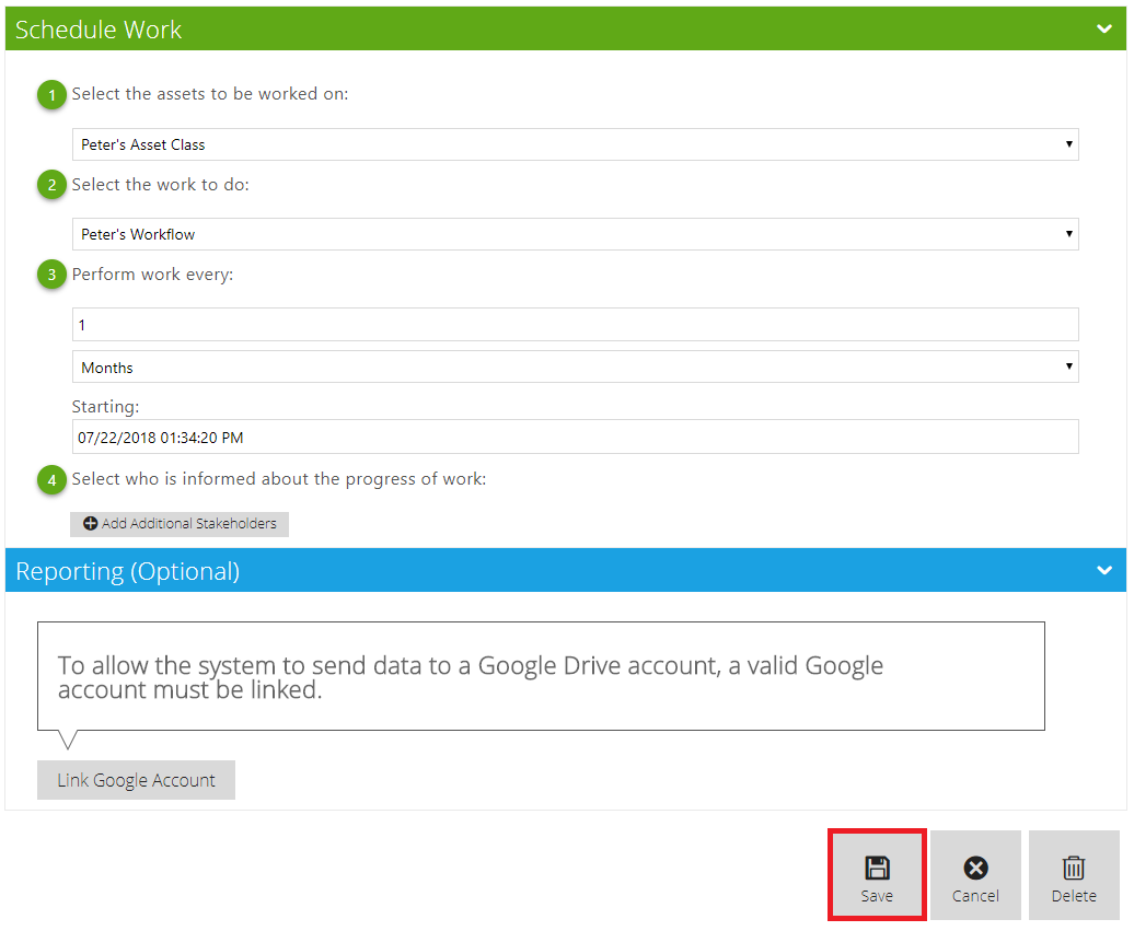- This enables the user to take workflows and asset classes and create work that is due on a schedule.