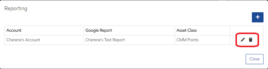 Once a report setting is created, select the pencil icon to edit the settings or the trashcan icon to permanently delete.