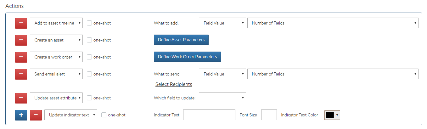 Create a Work Order: when the conditions are met, a work order is triggered on the current asset or another asset