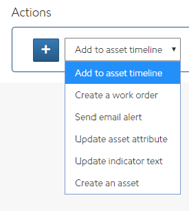 Add to asset timeline: when the conditions are met, a note is added to the asset timeline containing a single field value or a custom message.