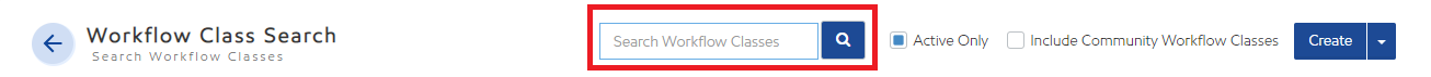 From the Workflow Class search screen, select the down arrow next to the Create button and select "Import'.