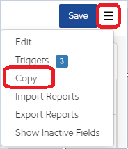Select the menu icon next to the Save button and select Copy.