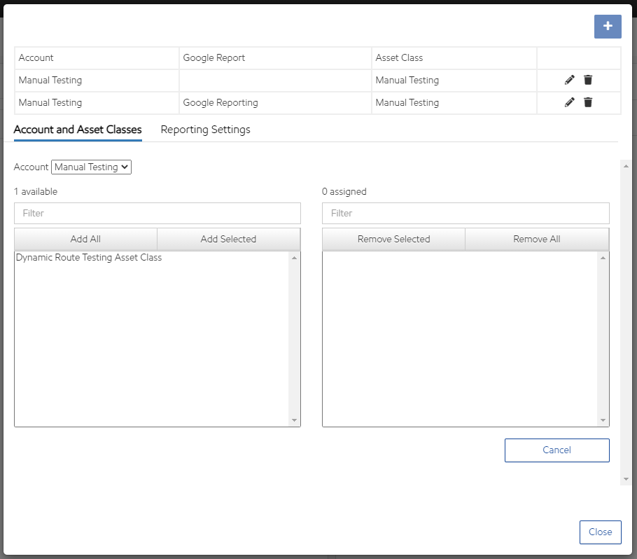 Select an Account and Asset Class, then select Reporting Settings.