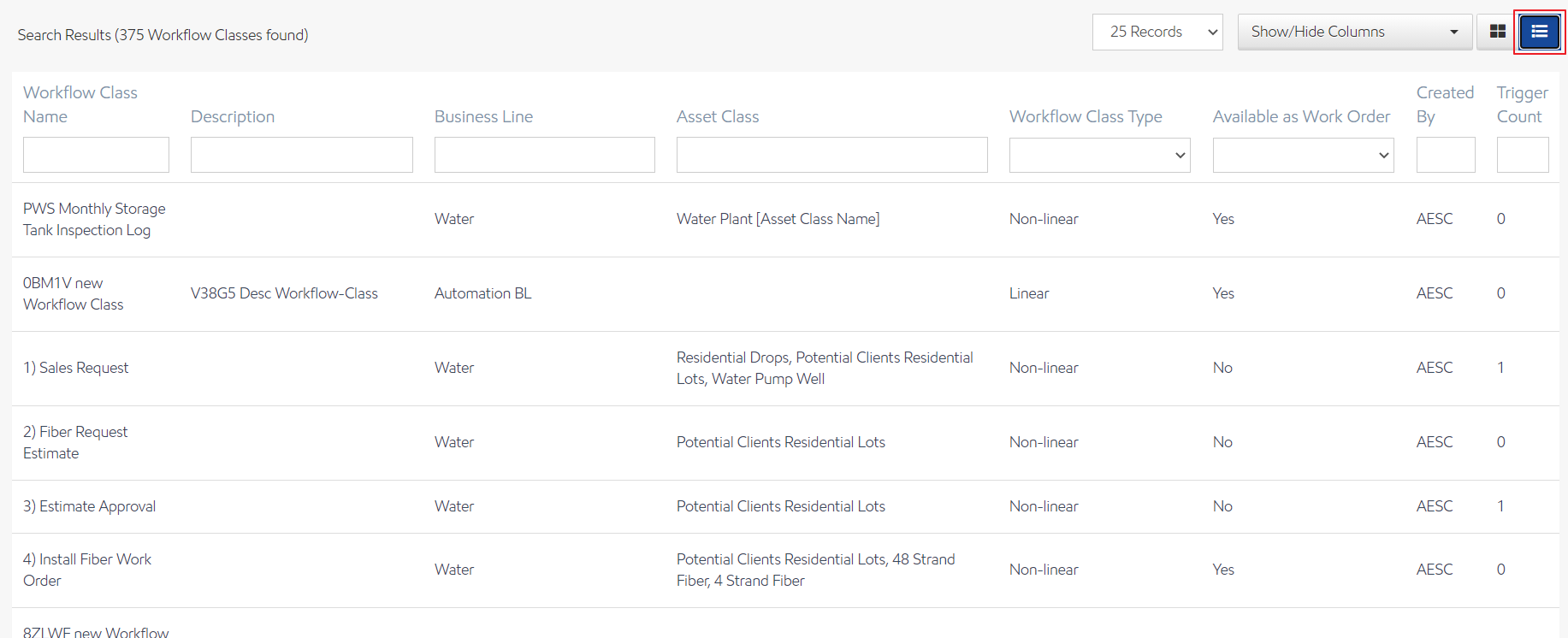 Available as Work Order - whether a workflow is available as a work order. This does not show if it is not.